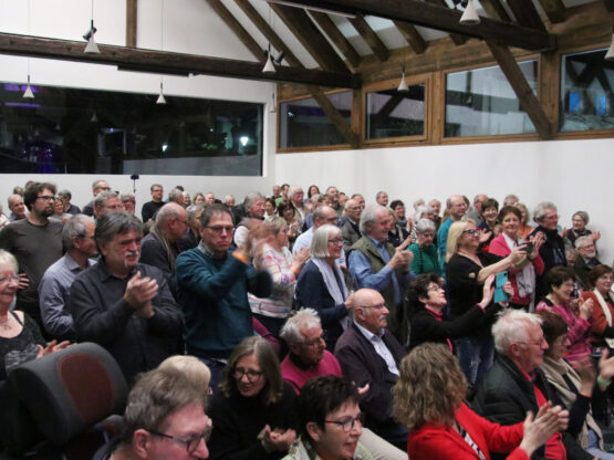 Ob Solo, ob Chor, ob mit oder ohne Publikum, ob ruhig, ob fetzig und lebhaft – die stimmgewaltigen Sänger*innen mit ihrem charismatischen Dirigenten zogen die Zuhörer in ihren Bann. Nach 90 Minuten Konzert ohne Pause dachte so Mancher: „Schade, dass es schon aus ist.“